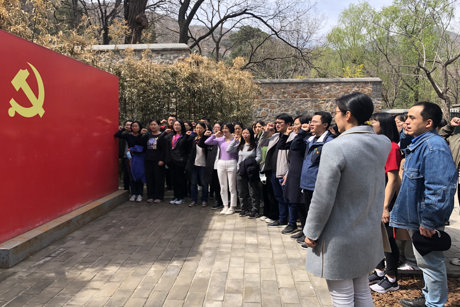 在雙清別墅、來青軒革命遺址,大家在樸素的平房里觀看了毛澤東同志居住室及生活照片、電文手跡、詩文手稿等,以及朱德、劉少奇、周恩來、任弼時等同志的辦公居住地,共同緬懷老一輩革命家當年在香山工作生活情況,充分領略了老一輩無產階級革命家艱苦奮斗的革命歷程。隨后,面對鮮紅的黨旗,在組織員李娜同志領誓下,重溫入黨誓詞,大家再一次體會到了作為一名共產黨員的責任感和使命感。