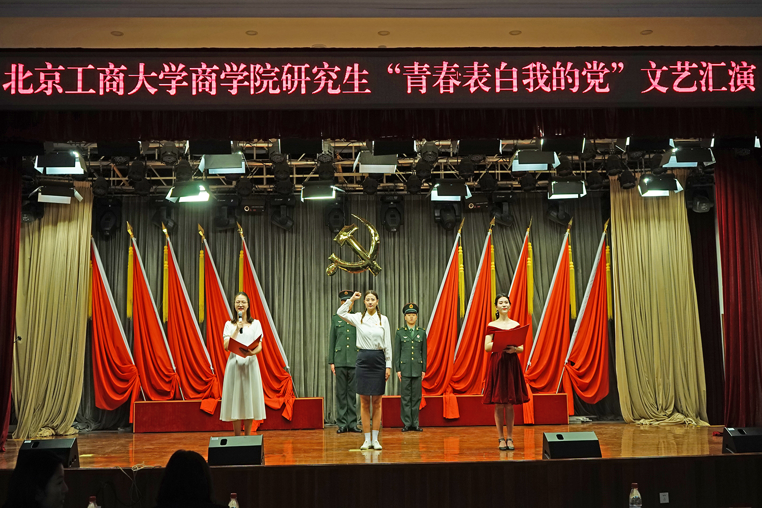百年輝煌新風尚,黨史教育滿校芳。為了迎接中國共產黨建黨百年,引導青年學生永遠跟黨走,寓教于樂表達愛黨愛國之情,5月24日下午,商學院研究生會學術文化節“青春表白我的黨”文藝匯演在阜成路校區教職工活動中心舉行。經過前期反復選拔、不斷打磨,共有商學院研究生黨支部推薦的十個節目參與本次匯演。研究生院副院長郭新愿、商學院黨委書記張春萍、院長毛新述、副院長孫永波、副書記張倩參加文藝匯演,研工部王一鳴、李昀澄、楊天驕、商學院劉卓、于天寧、祁飛、趙麗紅等老師共同觀看節目。