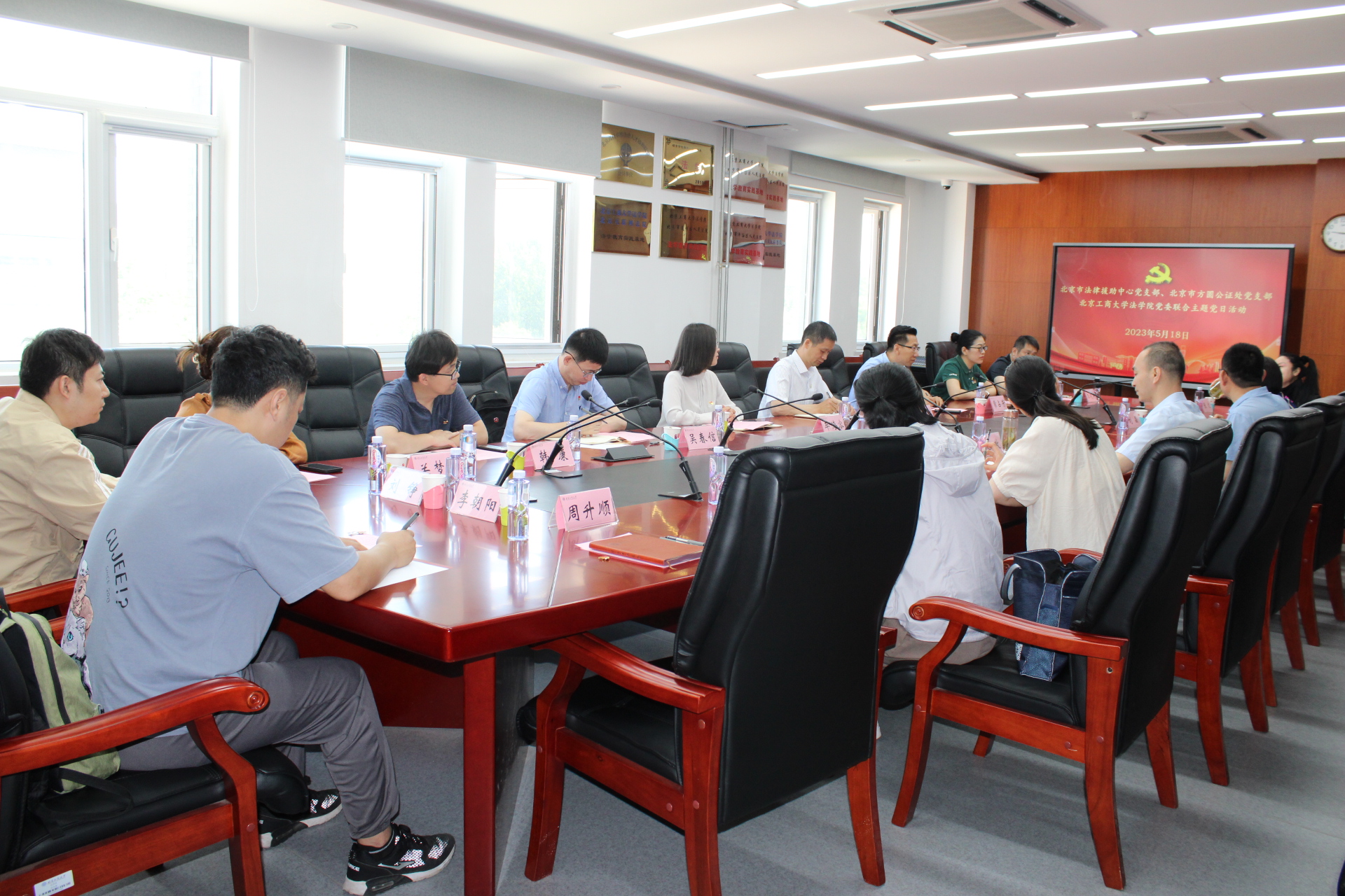 為深入學習貫徹習近平新時代中國特色社會主義思想,著力推動主題教育走深走實、見行見效,5月18日,北京市法律援助中心黨支部、北京市方圓公證處黨支部與我校法學院黨委聯合開展“踐行習近平法治思想,強化協同育人成效”主題黨日活動。北京市法律援助中心黨支部書記、主任馬品芳和北京市方圓公證處黨支部書記、副主任(主持工作)牟海容等一行11人來校。活動特邀我校馬克思主義學院田建華副教授和法學院理論法與刑事法教師黨支部書記張龍講授黨課。我校法學院副院長(主持工作)陳敦和黨委副書記劉晶等參加活動,活動由法學院黨委書記馬韜光主持。