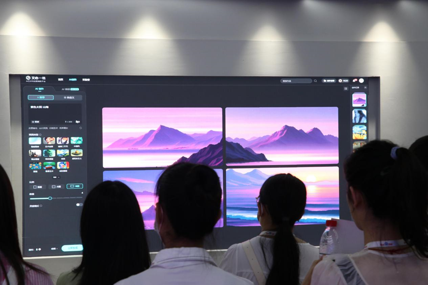 在講解員引導下,師生們前往百度智能展廳參觀。在這里,大家了解了百度的發展歷程、業務布局和技術優勢,近距離感受百度人工智能的應用場景和技術成果,切實體會到了“科技讓復雜的世界更簡單”。講解員向同學們展示了百度地圖慧眼和百度搜索大數據的功能和應用,這些技術的出現,為用戶獲取信息提供了更高效、便捷的方式,讓人們的出行和生活變得更加輕松。同學們現場體驗了百度創新推出的“AI作畫”產品——文心一格,親手制作生成了不同風格的畫作,實現了“人人皆可一語成畫”。