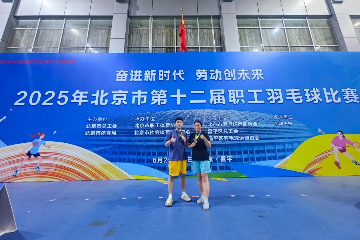 6月28日,“奮進新時代 勞動創未來”2025年北京市第十二屆職工羽毛球比賽于昌平區體育館圓滿落幕。在這場匯聚全市70余支基層職工代表隊、600余名羽毛球愛好者的盛大賽事中,我校教師李鑫楠、鐵春元勇奪混合雙打第六名,一舉刷新我校在該項賽事中的歷史最佳成績。