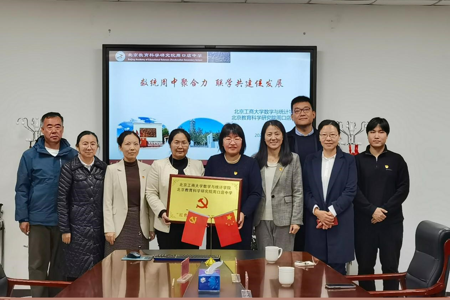 為深入推進(jìn)教育合作,數(shù)學(xué)與統(tǒng)計(jì)學(xué)院與北京教育科學(xué)研究院周口店中學(xué)于11月10日上午在周口店中學(xué)舉行了“紅色1+1”實(shí)踐基地共建儀式。