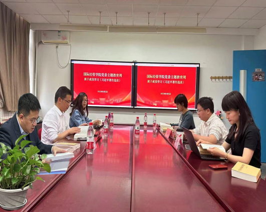 為深入開展學習貫徹習近平新時代中國特色社會主義思想主題教育工作,國際經管學院黨委立足學院學科和師資優勢,搭建“領導班子帶頭學、黨委委員示范學、支部黨員自覺學”模式,在學院全體師生中掀起主題教育學習熱潮,進一步提高師生黨員政治素養,增強做好主題教育工作的使命感與責任感。