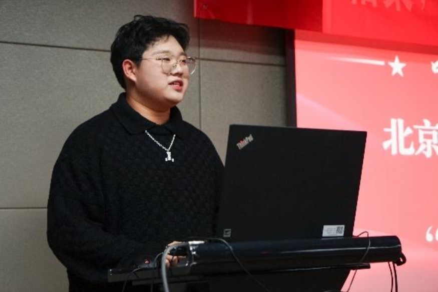 在學生代表發言環節,保險231班冀潔和金融232班張展赫結合自身在中財學習、生活和參加學生社團的經歷依次上臺分享,他們對中央財經大學和北京工商大學的精心培養和關愛深表感謝,號召大家以良好的精神狀態和飽滿的學習熱情備戰期末考試,取得優異成績。