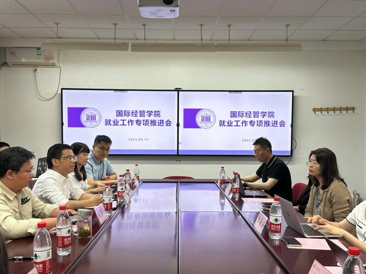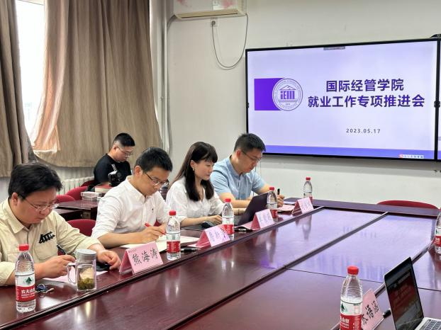 為深入學習貫徹黨的二十大精神,落實學校關于畢業生就業工作決策部署,全力促進學院畢業生順利就業,5月17日,國際經管學院召開就業工作“百日沖刺”專項推進會。學院全體領導班子、系主任、副主任、就業輔導員、本科19級各班班主任、研究生導師代表參加會議。會議由詹新宇院長主持。