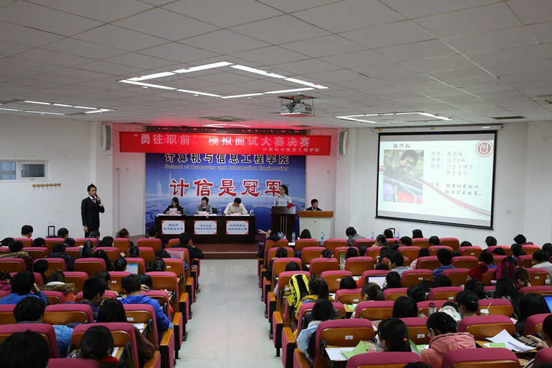 12月5日,良鄉校區工三102座無虛席,由學校就業指導中心與計算機與信息工程學院主辦、深受學生歡迎的“勇往職前”模擬面試大賽(第三屆)決賽在此舉行。