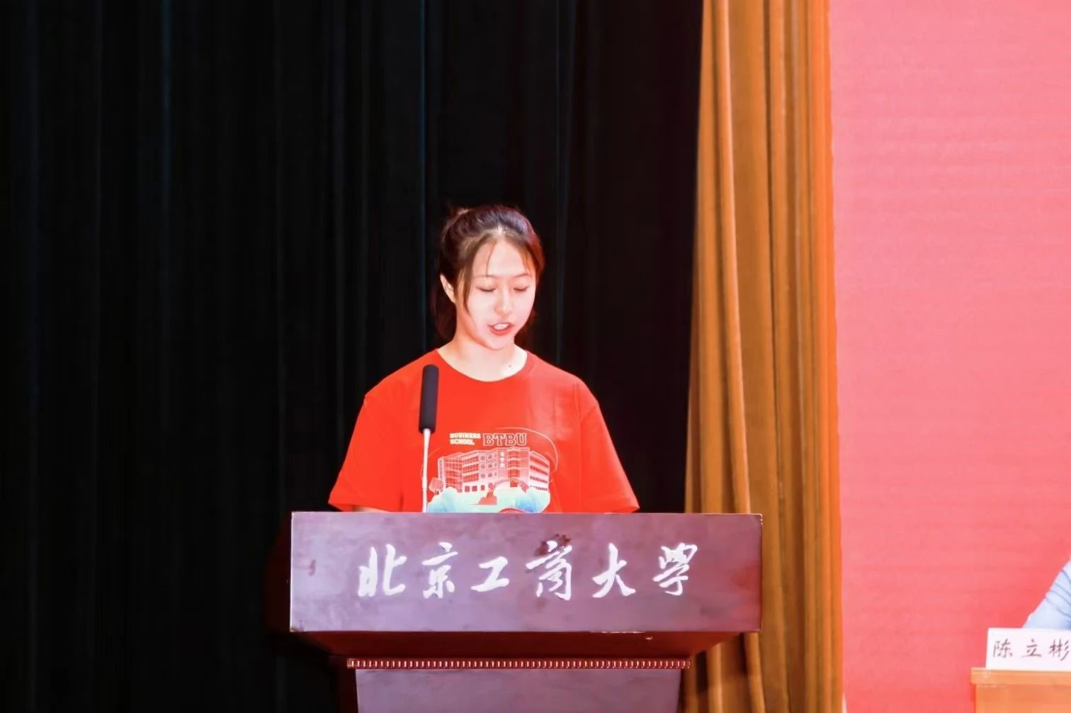 付仕倫在講話中表示,自今天起,同學們將以“北工商商院人”這個嶄新的身份在這里開啟新的人生旅程,也將為商學院帶來新的生機與活力,隨著同學們對學校學院的了解不斷深入,一定會對未來有著更高的期待,學院的師長們將始終密切關注大家的學習生活,為大家成長成才鋪路搭橋、保駕護航。希望大家繼承發揚學院使命愿景,傳承“求是 創新 協作 卓越“的價值觀,早日讀懂商院、融入商院,傳承商學院與生俱來北工商紅色基因,堅定理想信念,以開拓進取的姿態激發新作為,以時不我待的精神擔起新使命,努力成長為德智體美勞全面發展的社會主義建設者和接班人。