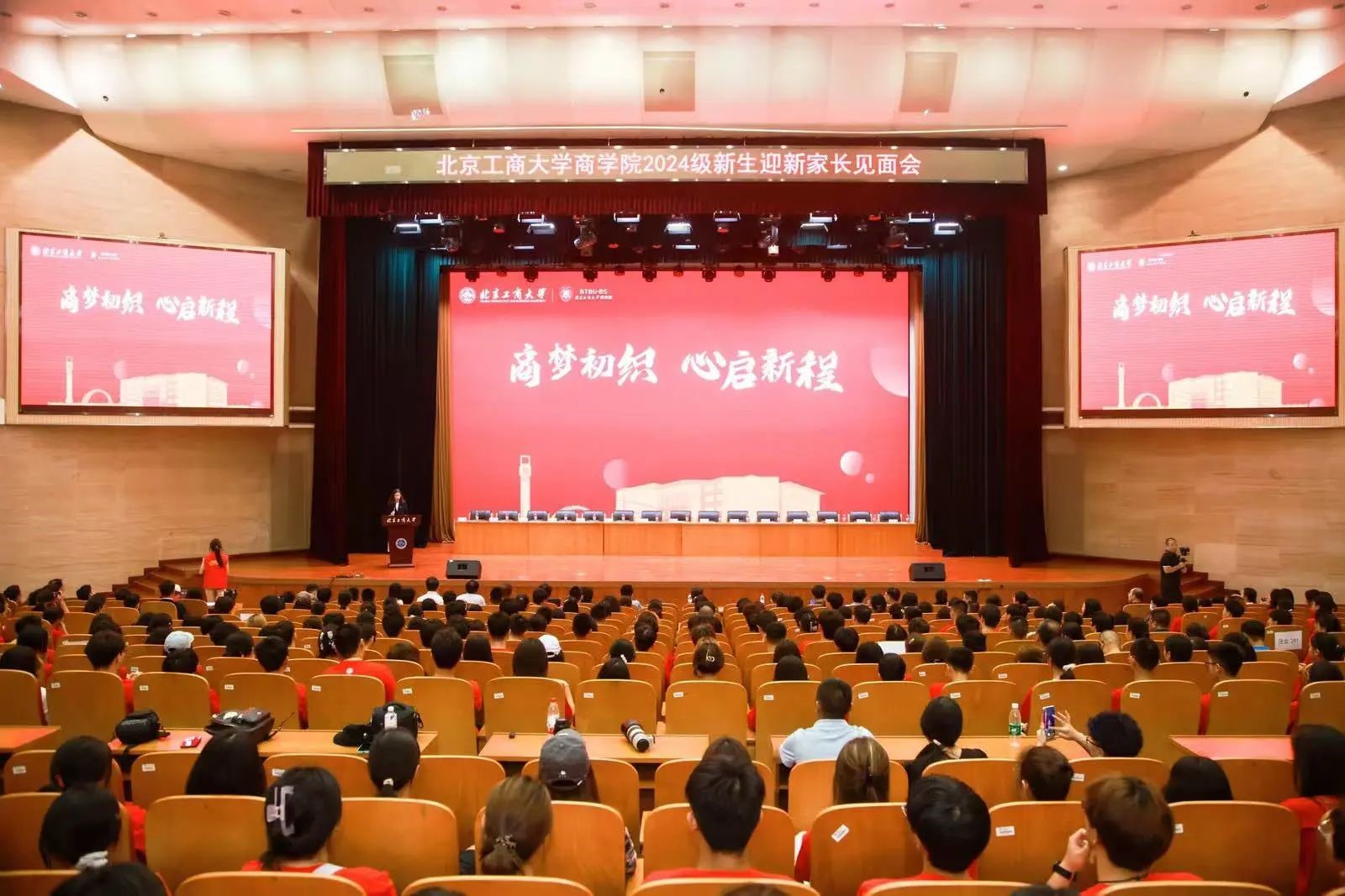 9月1日,商學院在良鄉校區A報告廳隆重舉行2024級新生迎新大會暨家長見面會,來自五湖四海、懷揣夢想的莘莘學子共同經歷這一欣喜時刻。