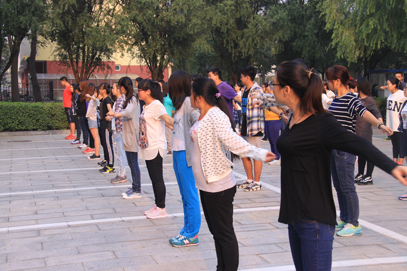 9月16日,藝術與傳媒學院團總支書記徐亮,輔導員王一筱、8名退伍學生、學生會干部代表和各班班主任助理組織學院2015級382名學生于我校文科實踐中心樓外的場地開展了晨練、晨讀活動。在老師和退伍學生的組織帶領下,2015級新生圍繞規劃的路徑開展晨跑運動,擺脫了大清早的困意,以抖擻的精神迎接新一天的到來。接著,在各班班主任助理的帶領下,同學們按不同班級分為幾個方隊,各自進行不同的運動項目和晨讀。在學生會文藝部的示范引領下,部分班級新生學習了廣場健身操《今夜舞起來》的基本動作,剛開始練習難免生疏,但新生們依舊盡力完成每一個動作,克服困倦懶惰,積極加入到晨練活動中來。