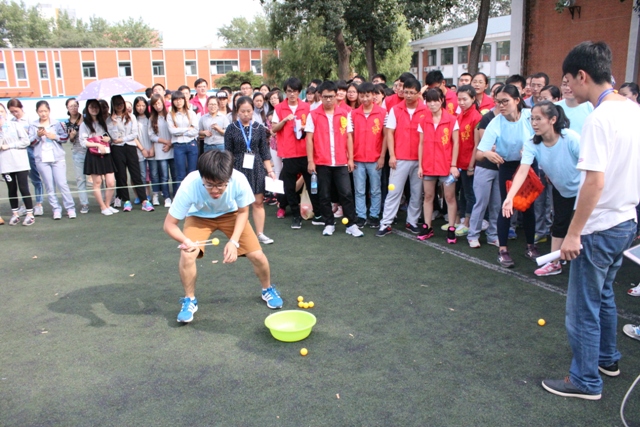 此次趣味運(yùn)動(dòng)會(huì)活動(dòng)由校研究生會(huì)主辦,各學(xué)院研究生會(huì)協(xié)辦。來(lái)自九個(gè)學(xué)院的四支代表隊(duì)參加了本次比賽,它們分別是:由經(jīng)濟(jì)學(xué)院和理學(xué)院組成的“經(jīng)邦理事”代表隊(duì)、法/馬學(xué)院和食品學(xué)院組成的“法力食足”代表隊(duì)、商學(xué)院和材機(jī)學(xué)院組成的“商機(jī)無(wú)限”代表隊(duì),以及藝傳、外語(yǔ)、計(jì)信學(xué)院組成的“藝語(yǔ)信必勝”代表隊(duì)。四支代表隊(duì)隊(duì)員精神抖擻、熱情洋溢,逐一開(kāi)展了“背球接力賽”、“豬八戒背媳婦”、“乒乓球快跑”、“滾雪球”以及“拔河”五項(xiàng)比賽的激烈角逐。拉拉隊(duì)隊(duì)員吶喊助威,身著統(tǒng)一院服的運(yùn)動(dòng)員們拼搏奮進(jìn),五個(gè)項(xiàng)目的比賽依次有序進(jìn)行。在一片歡笑聲中,此次趣味運(yùn)動(dòng)會(huì)圓滿(mǎn)結(jié)束。各學(xué)院參賽隊(duì)員在趣味競(jìng)技帶來(lái)的歡聲笑語(yǔ)中,發(fā)揮集體合作的力量,既提高了身體素質(zhì),又增強(qiáng)了團(tuán)隊(duì)凝聚力,展示了我校研究生同心協(xié)力、積極向上的精神風(fēng)貌。