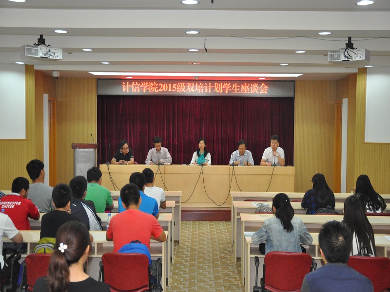 為做好首批“雙培計劃”學生培養工作,近日,計信學院召開2015級雙培計劃學生座談會。教務處副處長張偉,計信學院領導陳誼、蔡強、姜同強出席。學院黨總支副書記張凱偉主持座談會。2015級雙培計劃班全體學生、信息管理系劉蓓琳、熊海濤、趙璇、輔導員參加了座談會。