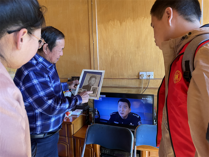 金雞臺(tái)村黨委副書記董阿男為同學(xué)們講述了金雞臺(tái)村的紅色歷史,同學(xué)們?cè)诟锩沂苛陥@向參加抗日戰(zhàn)爭(zhēng)、抗美援朝等戰(zhàn)爭(zhēng)中犧牲的英雄鞠躬哀悼,表達(dá)了后輩青年對(duì)革命先烈的無限緬懷與崇高敬意。同學(xué)們?cè)谔镩g地頭了解村內(nèi)的紅色文化發(fā)展。同學(xué)們?cè)诳箲?zhàn)老兵、老黨員的家中,通過對(duì)話感悟老一輩革命者的共產(chǎn)主義信仰。