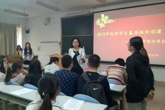 為加強和改進大學生思想政治教育,充分發揮班級、宿舍在學生成長中的凝聚、引導、服務作用,進一步推進學生基層組織建設,展示我院學生群體積極健康的精神風貌,食品學院于2015年10月16日在阜成路校區舉行優秀學生基層組織創建評審會。食品學院黨總支副書記胡燕霞,團總支書記劉晶,輔導員單靜敏、門怡帆,各班班長及團支書參加評審會。
