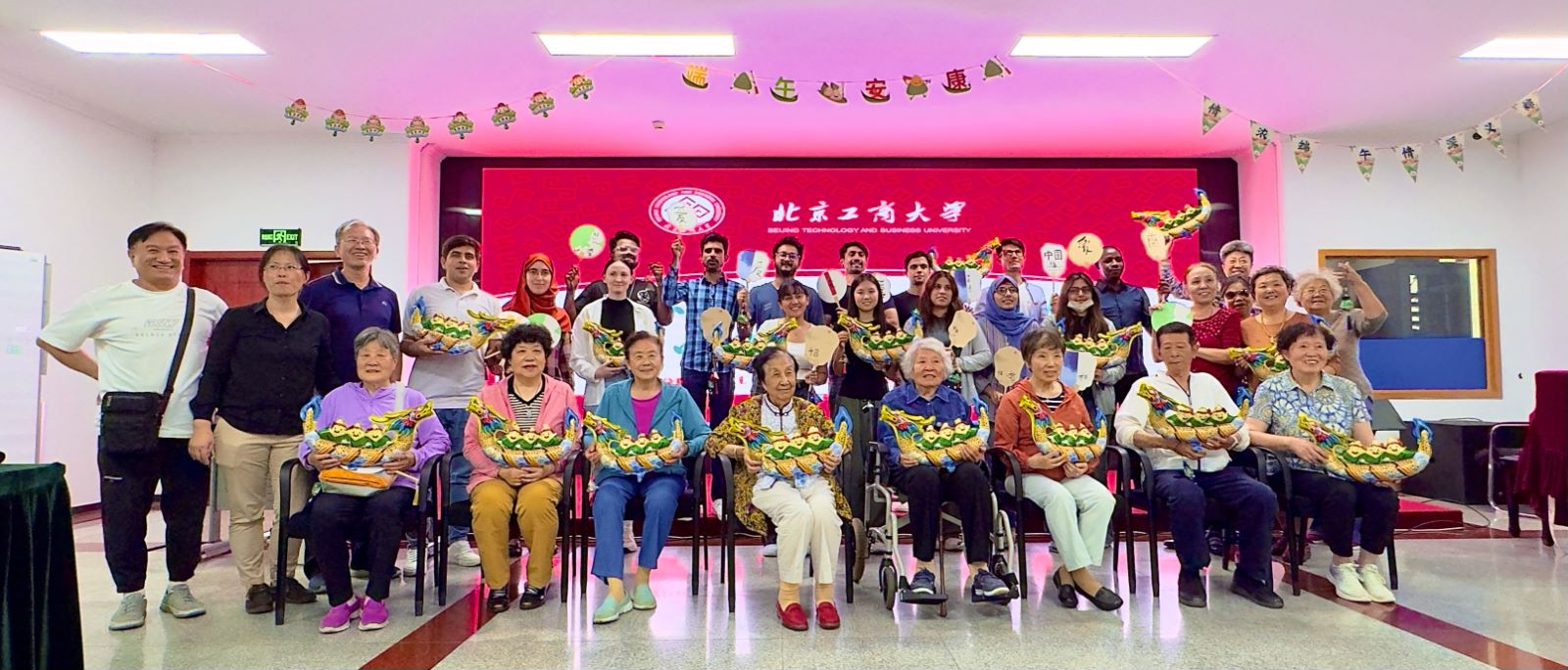 在這個充滿濃厚傳統文化氣息的端午節,離退休工作處與國際教育學院聯合策劃了一場特別的“中外師生話端午”聯誼活動,學校離退休老干部與在校的國外留學生齊聚一堂,共同慶祝這一中國傳統節日。活動吸引了眾多離退休干部和我校外國留學生的參與,精心安排了包括介紹端午傳統習俗、手工制作香囊、團扇書寫中國字、有獎問答以及品嘗端午粽子等系列文化體驗活動,以此促進中外文化之間的交流與融合。