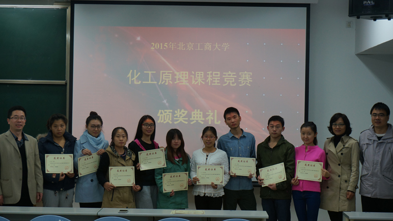 由我校教務處主辦、食品學院承辦的2015年北京工商大學首屆《化工原理》課程競賽于2015年6月成功舉行。來自食品學院和材機學院的110余位同學參加了競賽,經初賽、決賽,評出一等獎6名,二等獎10名,三等獎18名,優秀獎21名。