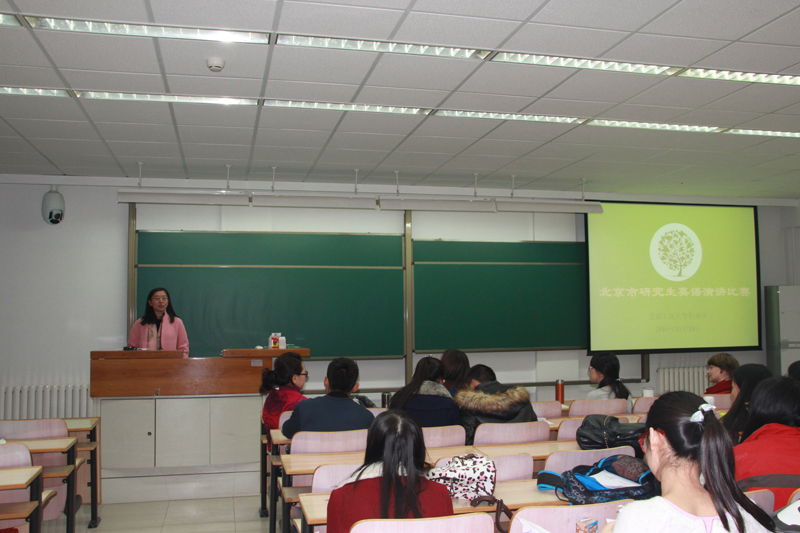 為提高我校研究生的英語口語水平,增強全校研究生的英語學習氛圍,在研究生院的大力支持和配合下,由外國語學院主辦的“北京工商大學第二屆研究生英語演講比賽”于11月18日下午在阜成路校區舉行。外國語學院的張艷華、趙聃、田芳和Kerryn等老師擔任了本次比賽的評委。