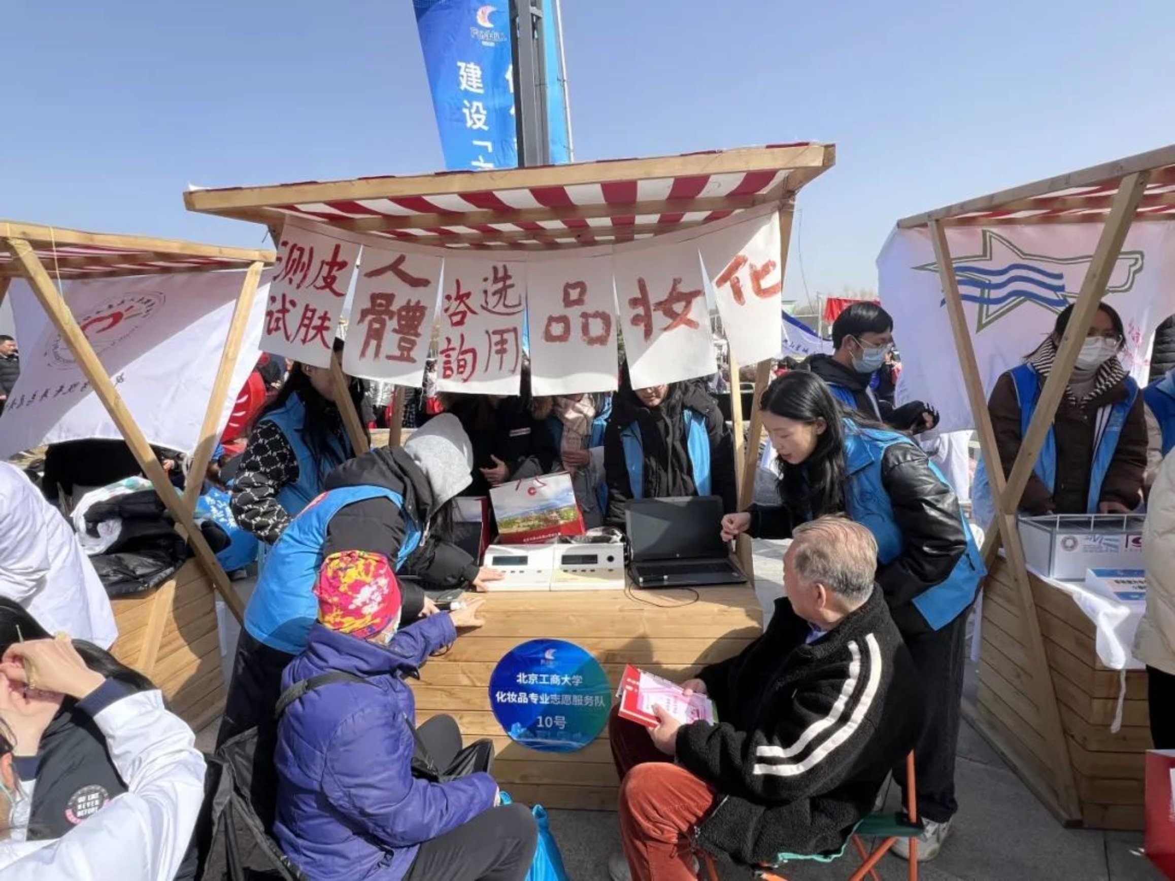 儀式上,北京工商大學作為駐區高校,與京東方、衛藍新能源、燕山石化、新城投等重點企業共同成立“志愿+”校地企共建志愿服務隊,并宣讀倡議書。北京工商大學化妝品專業志愿服務團隊在項目展示會上開展了皮膚檢測志愿服務,幫助附近居民們免費檢測膚質并給出專業的相關建議,志愿者們熱情的招待來到攤位前的每一個人,微笑著幫助他們檢測,不一會就吸引了許多市民參與。在整個過程中,志愿者們向參與市民宣傳了我校化妝品專業特色以及日常護膚知識科普,得到了參與人員的一致好評。活動結束之后,“志愿藍”們清理好活動現場,不讓一塊兒垃圾污染了燕山文化廣場干凈的土地,充分彰顯了新時代青年人們的時代風貌和精神風貌。在志愿者風采展示操舞類節目上,精神飽滿的志愿者們跟隨音樂起舞,表現了志愿者們昂揚向上的精神風貌。