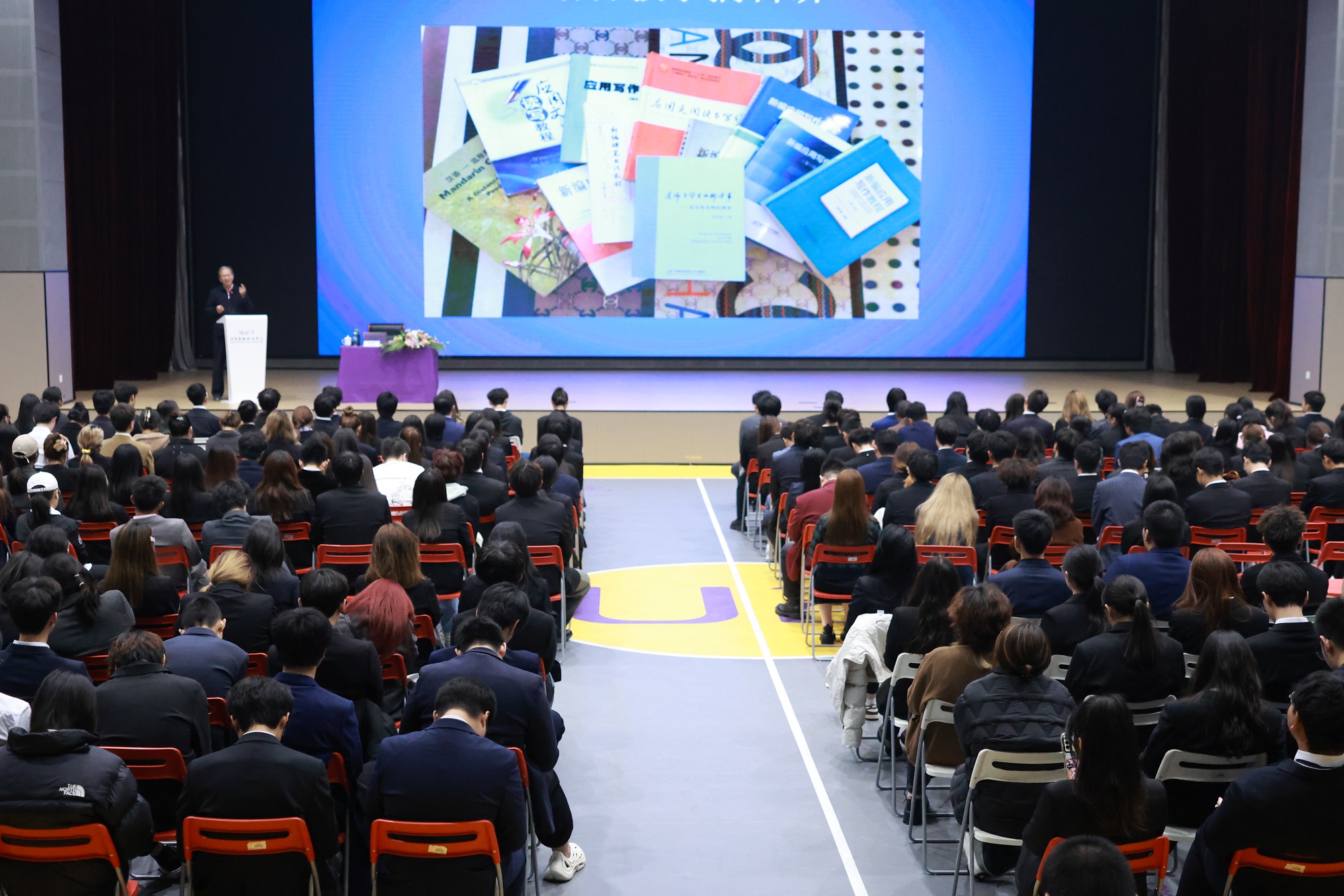 夏京春副教授以“與時俱進,砥礪前行”為題,結合個人成長經歷,向嘉華學院500余名團校學員分享了自己對傳統文化的理解和實踐。他回顧了自己的求學之路,如何從一名普通的學生成長為一位受人喜愛的大學老師,強調教育不僅僅是知識的傳授,更是智慧和品德的培養。他指出傳統文化是一個民族的根和魂,是連接過去和未來的橋梁,在現代社會快速發展的背景下,傳統文化迎來了新的傳播機遇。在講座過程中,夏京春還展示了他的一些書法作品,一筆一畫都透露出他對書法藝術的熱愛和對傳統文化的尊重。他鼓勵在座的學生們要珍惜學習的機會,不僅要學好現代知識,也要深入了解和傳承中國的傳統文化。在他的講述中,學生們感受到了教育的真正意義,以及作為教育工作者應有的責任和擔當。許多學生表示,聽了夏京春的講座后,對傳統文化有了更深的認識和理解,也激發了學習書法的興趣,紛紛當場掃描二維碼加入夏京春的網上免費書法班,親身體驗書法的魅力。