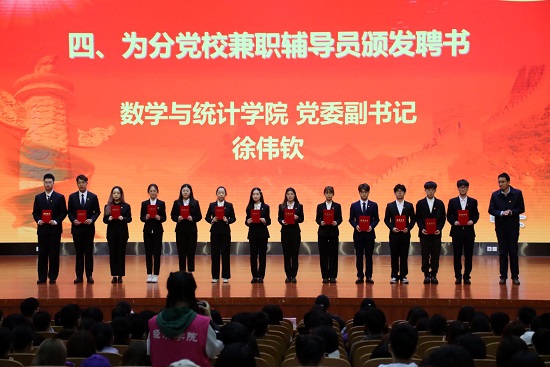 數(shù)學與統(tǒng)計學院黨委副書記徐偉欽為分黨校兼職輔導員頒發(fā)聘書。