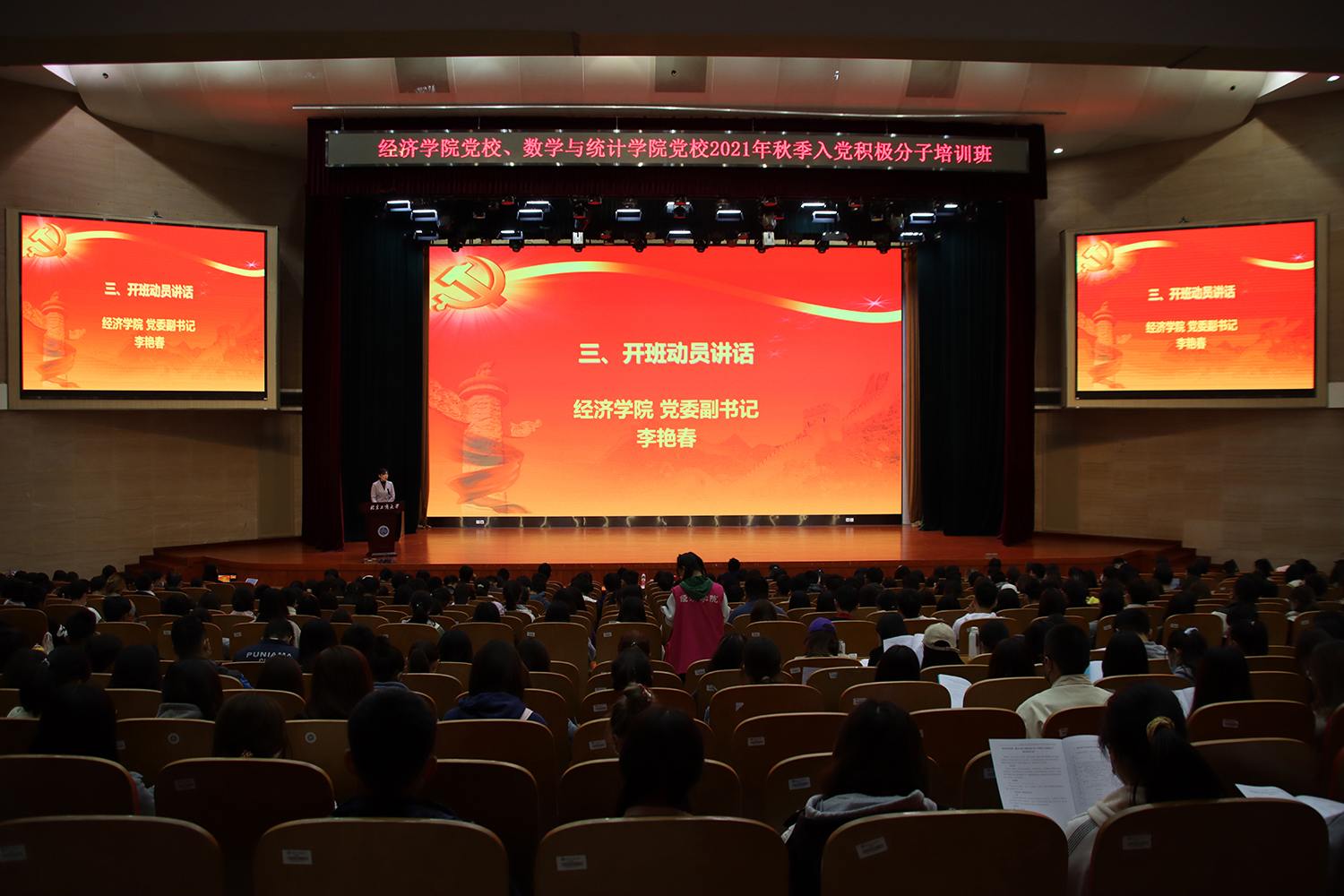 10月24日,經(jīng)濟學院黨校、數(shù)學與統(tǒng)計學院黨校2021年秋季入黨積極分子聯(lián)合培訓班開班典禮在良鄉(xiāng)主校區(qū)舉行。經(jīng)濟學院黨委副書記李艷春、數(shù)學與統(tǒng)計學院黨委副書記徐偉欽以及兩學院共計391名入黨積極分子參加了開班典禮。