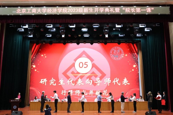 “禮”是中國傳統文化的核心,我國素有“禮儀之邦”之稱,講究尊師重道,注重拜師禮儀。在本次開學典禮的拜師儀式中,研究生代表依次向鯤鵬榮譽導師行敬茶禮、插手禮和獻花禮,表達最誠摯的敬意與感謝。師徒共進、薪火相傳,嚴肅而莊重的拜師儀式是經濟學院尊師重道的生動體現。