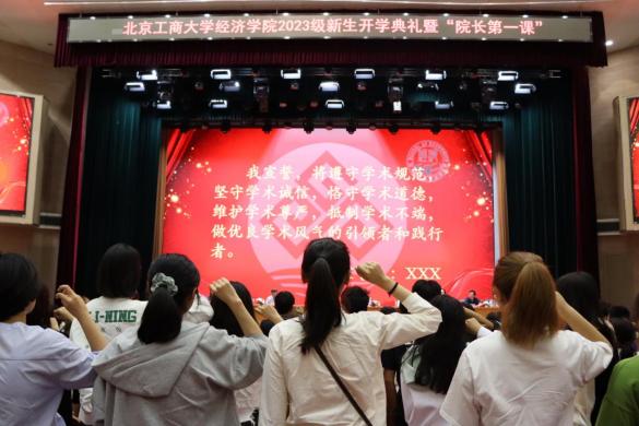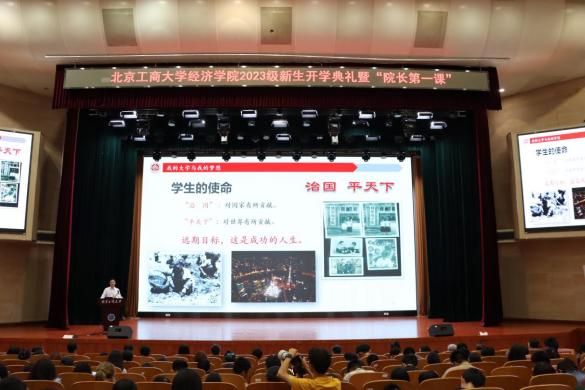 人生新序章,始于初秋;經心向遠方,奔赴山海。9月27日下午,經濟學院2023級新生開學典禮暨“院長第一課”在良鄉主校區A報告廳舉行。學院全體領導班子成員、各系教授代表、系主任、2023級本科生班主任、輔導員,以及全體2023級本科生和研究生共計750余人參加本次大會。會議由學院黨委副書記李艷春主持。