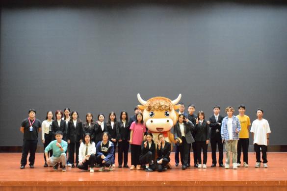 大會暖場節目精彩紛呈。來自不同組織社團的學生們先后表演了富有青春氣息的歌曲串燒、獨具歡快節拍的群體舞蹈,以及鏗鏘有力、聲情并茂的詩朗誦節目,充分調動了大會現場氛圍和師生情緒,而舞臺前方蹦跳搖擺的學院吉祥物“小犇”,更加展現了經院和經院學子的獨特活力。