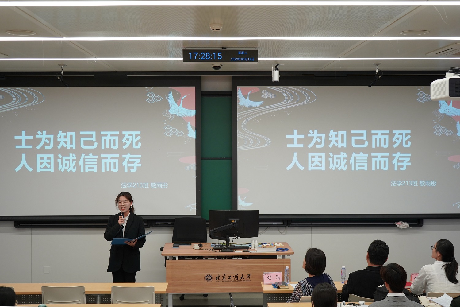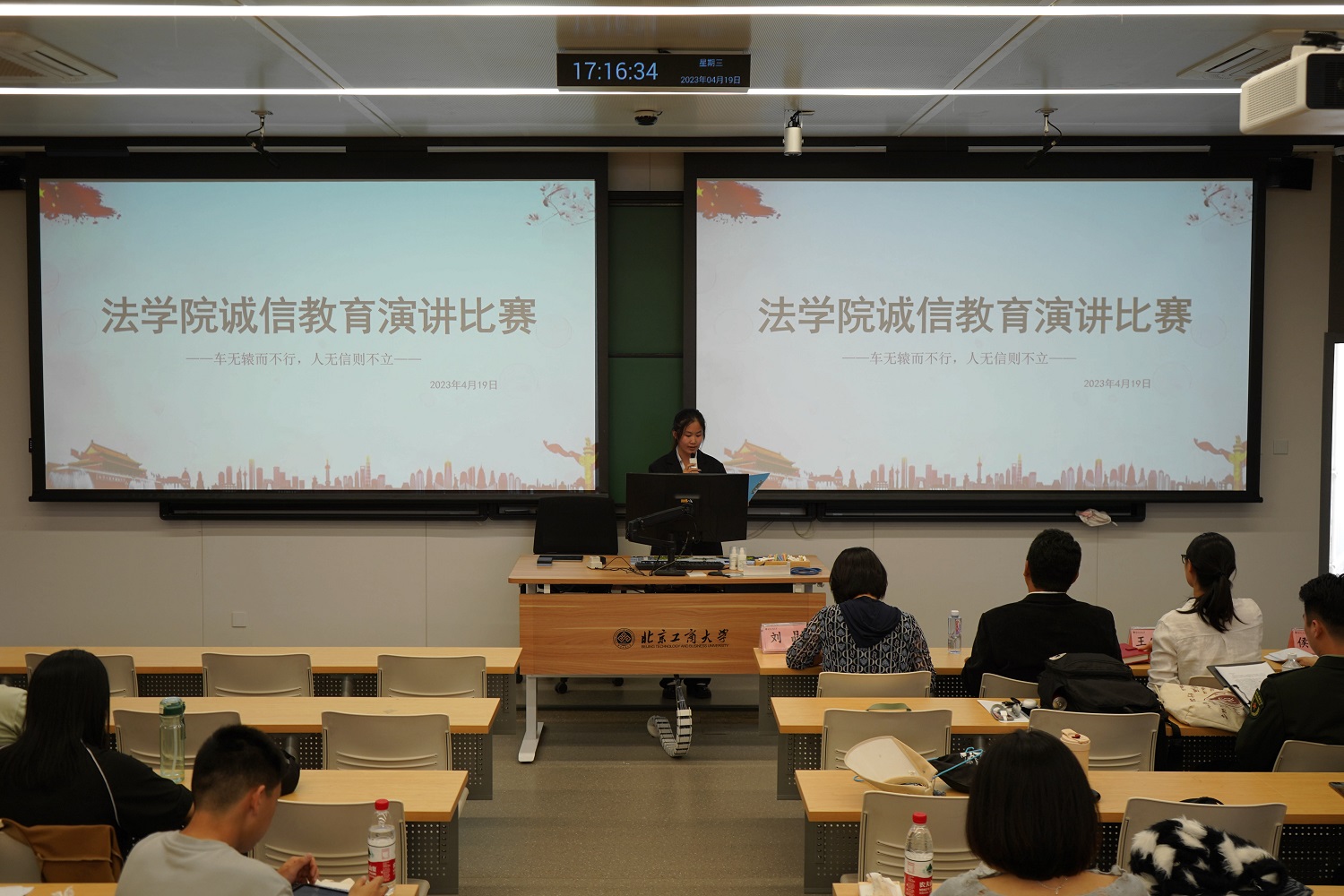 為深入學習宣傳貫徹黨的二十大精神,強化學生誠信意識,營造誠信為本的校園文化氛圍,法學院于419日下午舉行了誠信教育演講比賽。學院黨委副書記劉晶、團委書記王安瀾、專職組織員周升順出席比賽并擔任評委,11名同學參賽,110余名同學到場聆聽。