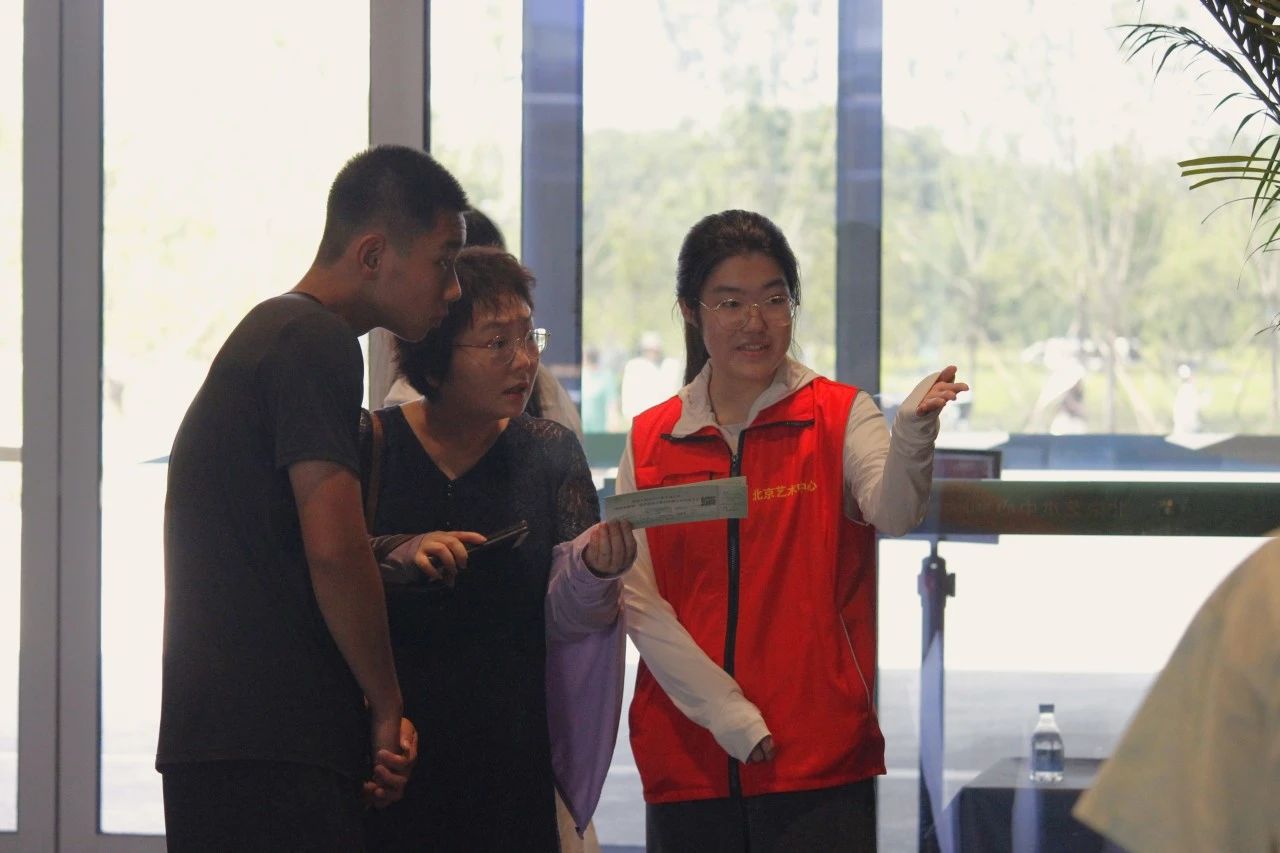 在北京藝術中心,志愿者們同樣展現出了他們的專業與熱情。6月10日,10名志愿者現身北京藝術中心,他們相互協作,積極開展觀眾指引、檢票、行李寄存等工作。