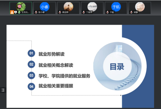 教師趙蕾為畢業生講述了關于如何開展“學社銜接”工作,細致地講解了不同情況下同學們的團組織關系的去向問題,并詳細介紹了就業安排、畢業生就業手續辦理流程以及就業信息獲取渠道等內容,希望同學們能積極關注就業動態,參加學校、學院組織的各類型招聘活動。