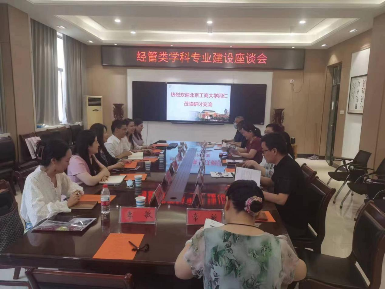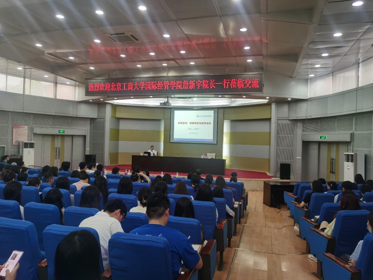 雙方舉行“經(jīng)管類(lèi)學(xué)科專(zhuān)業(yè)建設(shè)座談會(huì)”。座談會(huì)由河南科技學(xué)院經(jīng)濟(jì)與管理學(xué)院黨委書(shū)記何二毛主持,院長(zhǎng)崔鴿從辦學(xué)條件、辦學(xué)理念、師資力量、招生就業(yè)、學(xué)科建設(shè)等方面介紹了河南科技學(xué)院及其經(jīng)濟(jì)與管理學(xué)院的有關(guān)情況,副院長(zhǎng)張紅巖、副院長(zhǎng)陳軍民、國(guó)際貿(mào)易教研室主任魯旭、金融科技教研室主任常敏、經(jīng)濟(jì)學(xué)教研室主任翟士軍等就各自專(zhuān)業(yè)領(lǐng)域作了匯報(bào)。詹新宇介紹了國(guó)際經(jīng)管學(xué)院的發(fā)展歷程、辦學(xué)特色和建設(shè)成果,希望加強(qiáng)人才培養(yǎng)、科學(xué)研究等方面的合作。調(diào)研雙方圍繞金融科技等新商科專(zhuān)業(yè)的學(xué)科建設(shè)、模塊化課程體系設(shè)計(jì)等問(wèn)題展開(kāi)了深入研討。