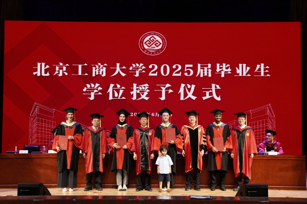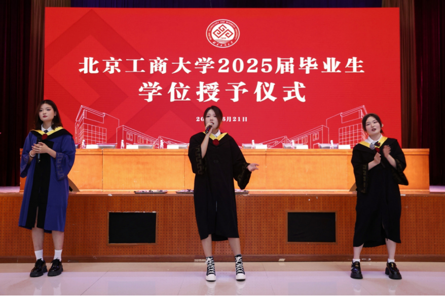 莊嚴的國歌奏響,畢業典禮正式開始。王彥波宣讀《北京工商大學食品與健康學院關于2025屆學生學位授予以及表彰優秀畢業生的決定》,學院共有422名畢業生獲得學位,其中本科畢業生207名,碩士研究生189名,博士研究生26名(含5名留學生)。15人獲“北京工商大學優秀本科畢業生”榮譽稱號,18人獲“北京工商大學優秀碩士研究生畢業生”榮譽稱號,4人獲“北京工商大學優秀博士研究生畢業生”榮譽稱號,14人獲“北京市優秀本科畢業生”榮譽稱號,9人獲“北京市優秀研究生畢業生”榮譽稱號,2人獲“北京市優秀博士畢業生”榮譽稱號。