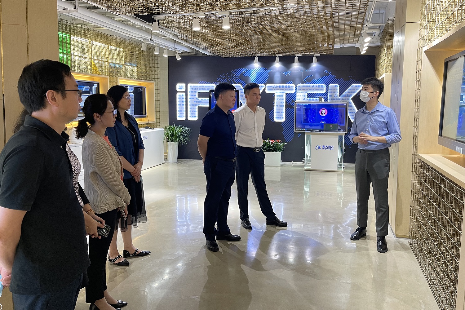 學校調研團參觀了科大訊飛展廳,體驗了科大訊飛核心技術及行業應用,聽取了訊飛A.I.助力高校智慧教學發展的應用成果匯報和人才需求情況。