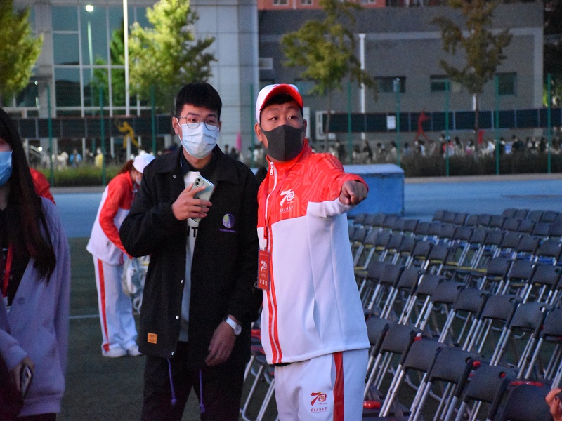 10月17日晚,學校在良鄉校區的柏林藍操場舉辦了熱烈隆重的校園師生文藝匯演。志愿者們兵分三路,全力保障晚會順利進行。指引志愿者們整齊有序地站立在通往晚會的各條路線上,為沿途嘉賓、老師、同學們引導方向,方便觀眾有序進入現場;檢票志愿者們不畏寒風,一絲不茍地查驗入場券、疏導人群;現場志愿者們分布在各個區域,為入場觀眾安排座位。志愿者們身著帶有“北京工商大學”“70”字樣的定制服裝,在晚會現場形成了一道靚麗的風景。