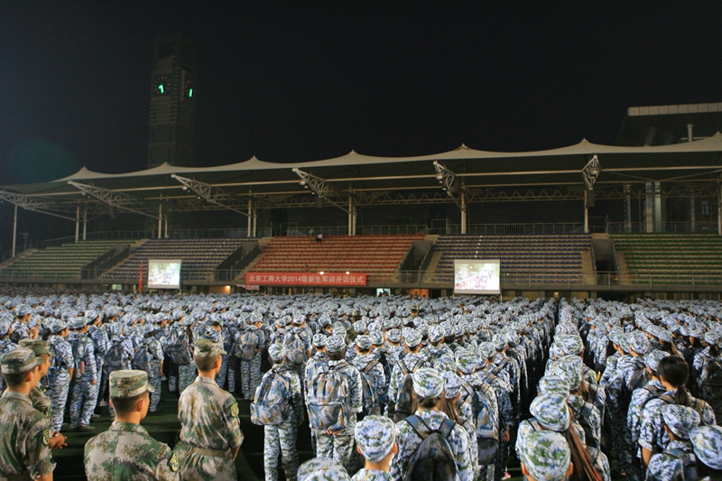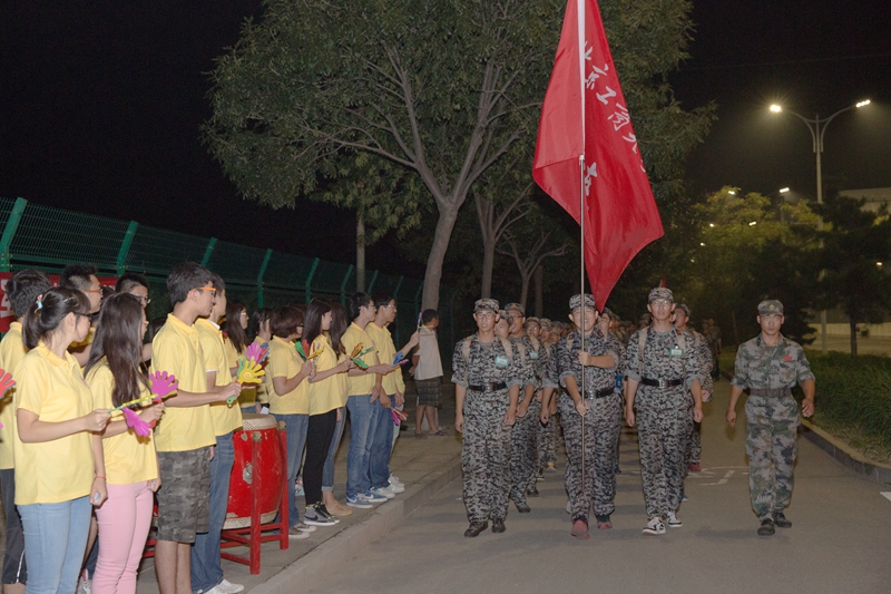8月29日晚,秋風習習,2014級新生軍訓負重拉練如約而來。19點30分,參加拉練的全體學生在操場上準時集合。他們一身戎裝,背著行囊,精神抖擻,豪情百倍。