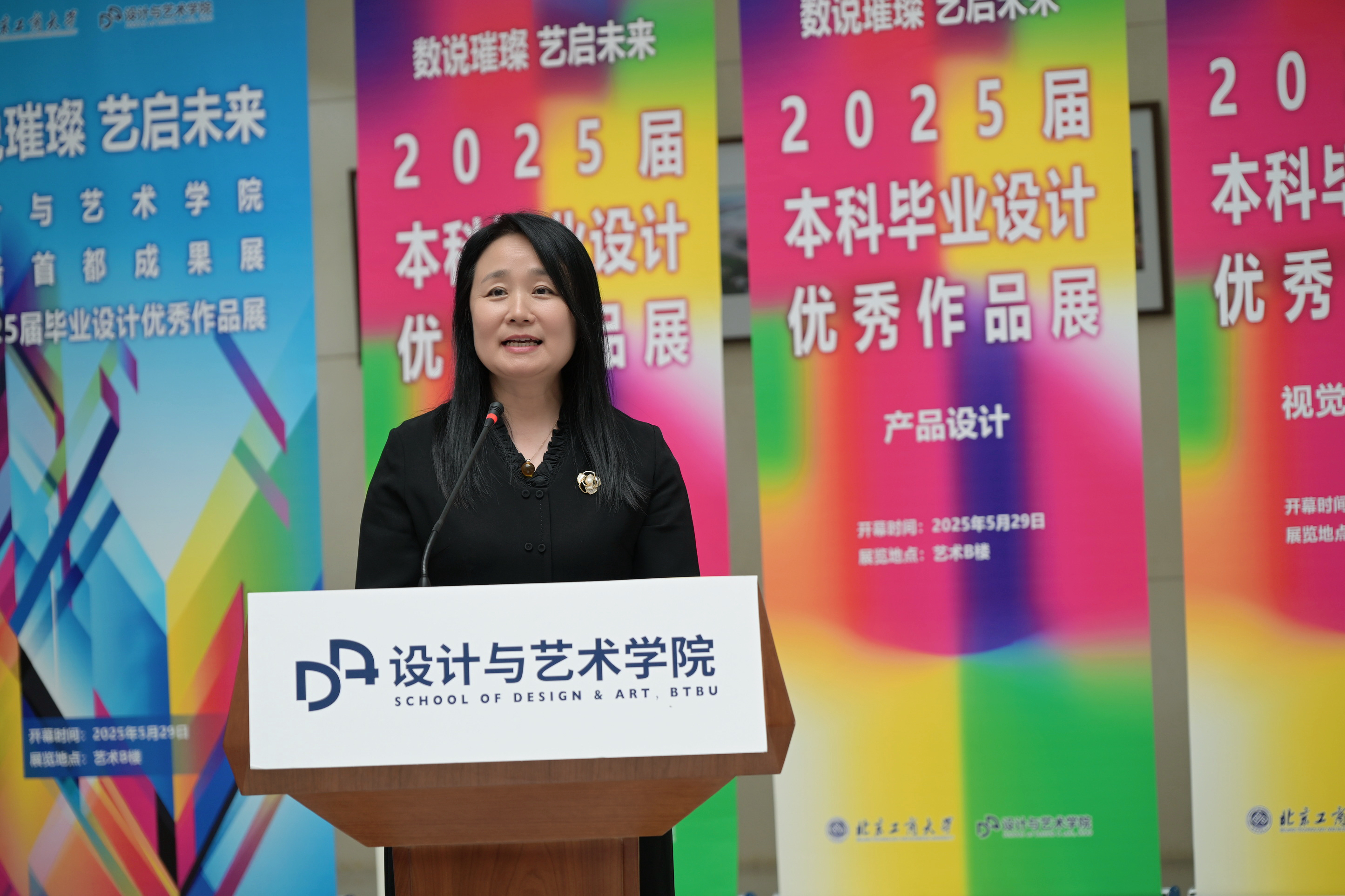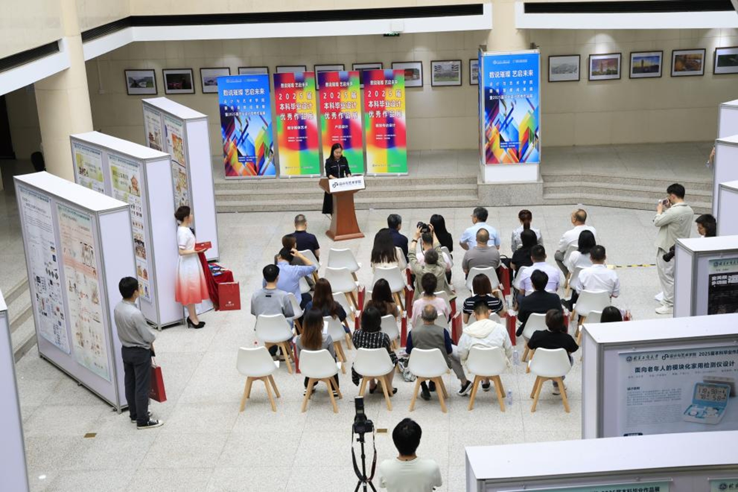 設(shè)計(jì)與藝術(shù)學(xué)院黨委書記王海偉介紹了2025屆畢業(yè)設(shè)計(jì)作品展和服務(wù)首都成果展的整體情況。本次展覽涵蓋課程教學(xué)成果、畢業(yè)設(shè)計(jì)成果與服務(wù)屬地項(xiàng)目,集中體現(xiàn)了學(xué)院在課程思政、產(chǎn)教融合、文化育人等方面的探索成效,是設(shè)藝學(xué)子以專業(yè)力量服務(wù)社會(huì)、回應(yīng)時(shí)代的實(shí)踐匯報(bào)。希望通過(guò)此次展覽進(jìn)一步加強(qiáng)校內(nèi)外交流合作,搭建一個(gè)黨建引領(lǐng)、產(chǎn)學(xué)研用緊密結(jié)合的平臺(tái)。