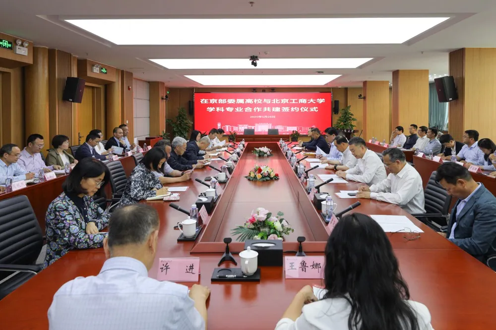 沈千帆在講話中表示,8所部委屬高校作為中國高等教育的“排頭兵”,在學(xué)科建設(shè)、科研創(chuàng)新、人才培養(yǎng)等領(lǐng)域成果卓著。當前,北京工商大學(xué)正處于全力推進工商一體化、爭創(chuàng)“雙一流”的關(guān)鍵時期。此次與8所部委屬高校開展學(xué)科專業(yè)合作,必將為學(xué)校高質(zhì)量發(fā)展注入新的活力、帶來新的機遇。他希望結(jié)對共建學(xué)院積極推動構(gòu)建“學(xué)科交叉、優(yōu)勢互補”的人才培養(yǎng)模式,共育創(chuàng)新人才;聚焦人工智能、數(shù)字商科、食品健康等前沿領(lǐng)域,共建科研高地;共享優(yōu)質(zhì)資源,積極探索師資隊伍建設(shè)、精品課程打造、科研設(shè)備共享新做法;圍繞區(qū)域經(jīng)濟社會發(fā)展需求,共擔(dān)智庫建設(shè)、鄉(xiāng)村振興、文化傳承等社會責(zé)任。他表示,北京工商大學(xué)將以此次簽約為起點,在各部委屬高校大力支持下,積極發(fā)揮自身資源稟賦和學(xué)科優(yōu)勢,攜手踐行教育強國使命,共同探索部市高校“大手拉小手”、攜手建設(shè)教育強國的嶄新范式。