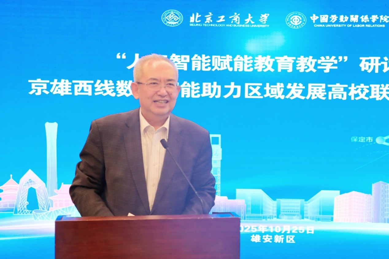 10月25日,“人工智能賦能教育教學”研討會暨京雄西線數字智能助力區域發展高校聯盟第二次會議在雄安新區會展中心召開。河北省總工會黨組成員、副主席韓立群,我校黨委副書記、校長郭建華,黨委常委、副校長寇紅江,中國勞動關系學院黨委副書記、校長傅德印,黨委常委、副校長吳萬雄出席會議。北京市、河北省13所聯盟高校代表,雄安新區總工會領導和雄安新區教育局、智能領域企業代表參加會議。本次活動由中國勞動關系學院承辦。