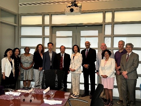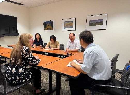 在紐約訪問(wèn)期間,代表團(tuán)一行前往位于紐約州首府所在地的紐約州立大學(xué)奧爾巴尼分校,與該校教務(wù)長(zhǎng)卡洛·金(Carol H.Kim)、副校長(zhǎng)法丁·薩拉(Fardin Sanai)、商學(xué)院院長(zhǎng)丹尼斯·卡普蘭(Dennis Caplan)、國(guó)際教育與全球戰(zhàn)略部主任瑞秋·穆迪(Rachel Moody)、金融學(xué)院副院長(zhǎng)瑞塔·比斯沃斯(Rita Biswas)、會(huì)計(jì)與法學(xué)系副教授蓋·弗蘭多(Guy Fernando)等進(jìn)行會(huì)談。黃先開(kāi)指出,北工商正在全面推進(jìn)與美國(guó)高校的雙邊合作和交流,積極促進(jìn)中美高校間的人文交流和師生往來(lái)。兩校學(xué)科設(shè)置相近,發(fā)展重點(diǎn)也有很多相同之處,希望雙方充分發(fā)揮在商科領(lǐng)域和教育數(shù)字化領(lǐng)域的學(xué)科優(yōu)勢(shì),推動(dòng)雙方的深入交流和共同發(fā)展。會(huì)談期間,黃先開(kāi)代表學(xué)校與該校簽署校際合作協(xié)議,雙方將圍繞更多優(yōu)勢(shì)領(lǐng)域開(kāi)展務(wù)實(shí)合作。