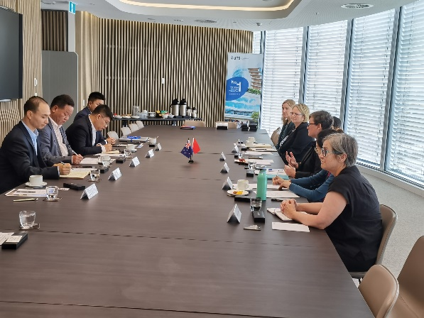 在悉尼科技大學訪問期間,鄭文紅還與悉尼科技大學法學院院長安妮塔·斯塔莫教授(Prof.Anita Stuhmcke)和商學院國際項目主任托馬斯·吳(Thomas Wu)進行會談,并就兩校商學類和法學類專業的學生項目、師資交流進行討論,同時雙方就涉外法治人才基地項目和涉外法治創新型人才國際合作培養項目等內容進行了對接。