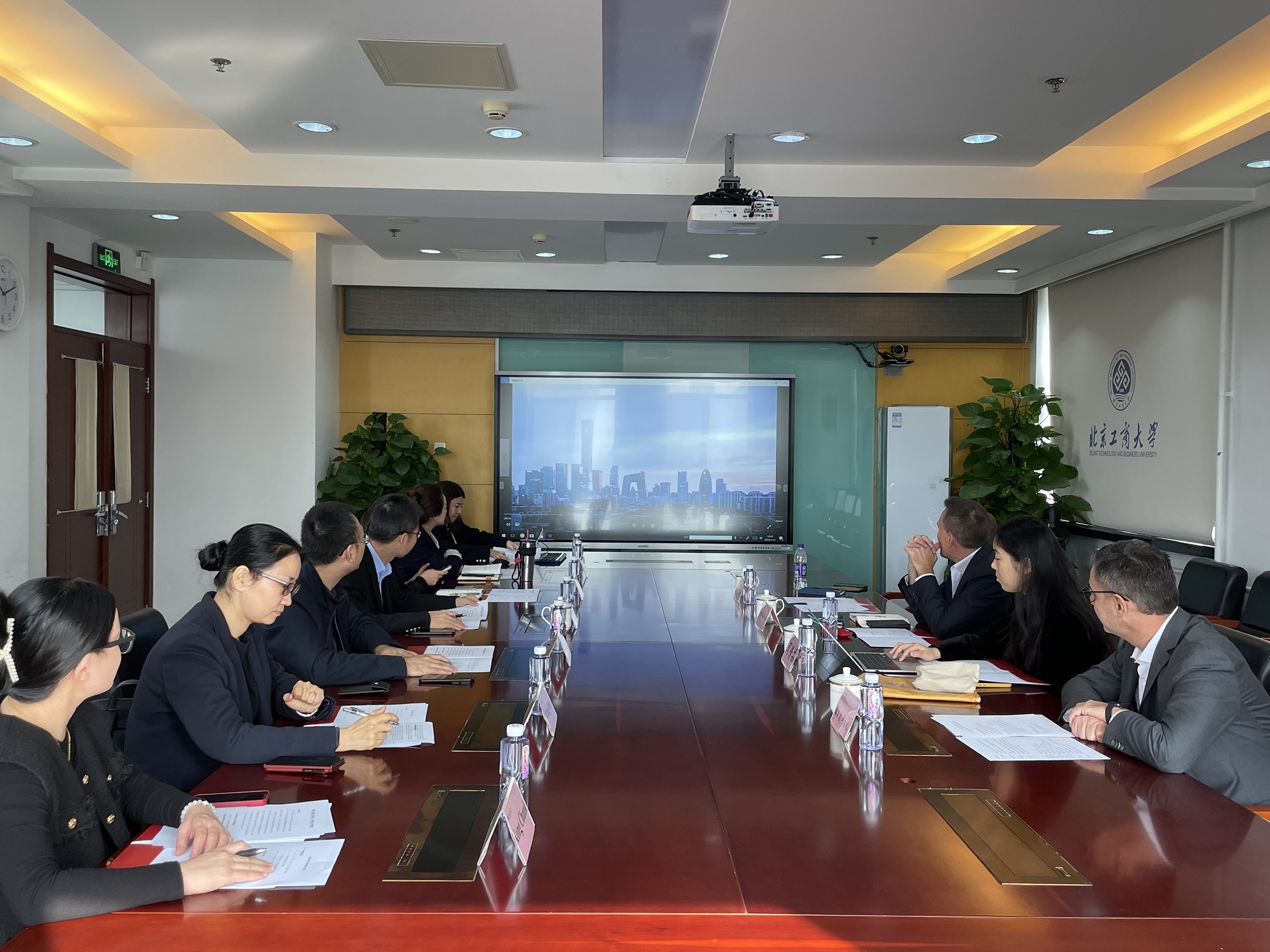 意大利圣心大學國際合作處副處長強盧卡?薩姆薩(Gianluca Samsa)、國際合作處中國大陸及港澳臺地區事務高級主管周倩茹、農業食品和環境學院農業化學教授、食品加工工藝系主任路易基?盧齊尼(Luigi Lucini),我校國際交流與合作處處長賀冬萌、副處長曹嬿,食品與健康學院院長王彥波、副院長王蓓參加了此次會談。