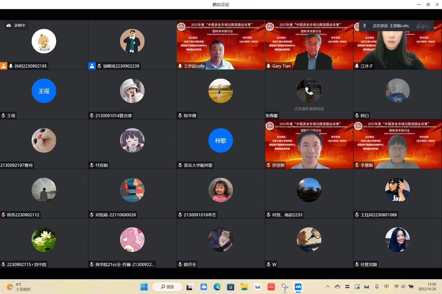 11月26日,第二屆“中國(guó)資本市場(chǎng)與國(guó)資國(guó)企改革”國(guó)際學(xué)術(shù)研討會(huì)采用線上會(huì)議方式召開(kāi)。我校副校長(zhǎng)龔六堂教授出席會(huì)議并致辭。我校原副校長(zhǎng)謝志華教授出席會(huì)議。香港大學(xué)、澳大利亞麥考瑞大學(xué)、香港城市大學(xué)、中國(guó)南方科技大學(xué)、中國(guó)人民大學(xué)、廈門(mén)大學(xué)、復(fù)旦大學(xué)等30余所高校的專家學(xué)者,我校研究生院院長(zhǎng)兼商學(xué)院院長(zhǎng)毛新述教授、商學(xué)院副院長(zhǎng)張偉華教授、商學(xué)院教師和研究生參加了此次會(huì)議。