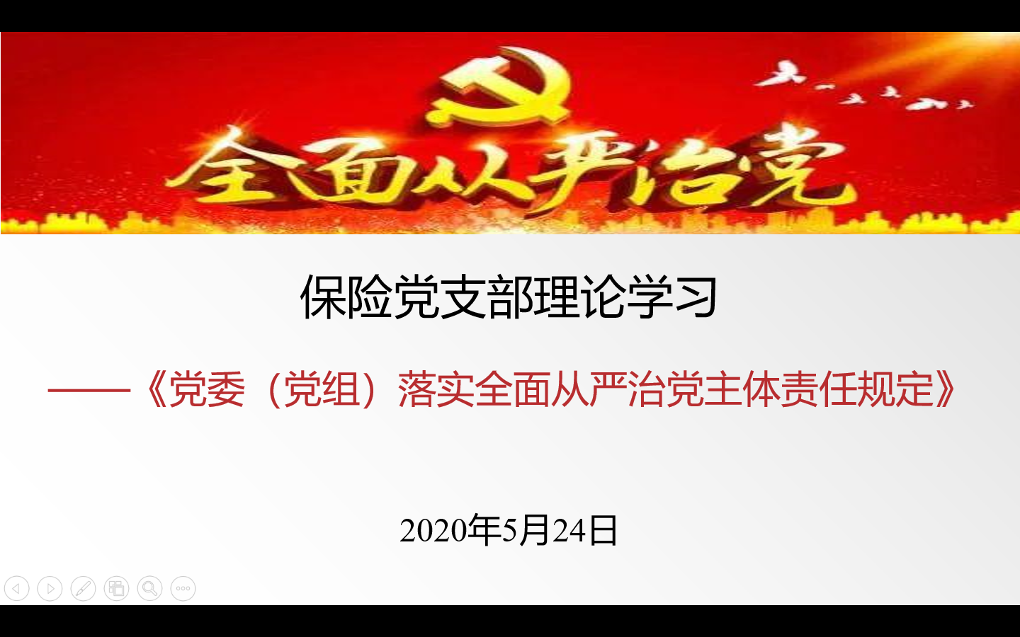 2020年5月24日晚7點,保險系黨支部的教師黨員召開2020年第三次理論學習會議。按照學院黨員和教職工理論學習計劃的安排部署,本次會議的主題是學習《黨委(黨組)落實全面從嚴治黨主體責任規定》等黨章黨規黨紀。會議通過騰訊會議的形式開展,由黨支部書記吉彩紅老師主持。