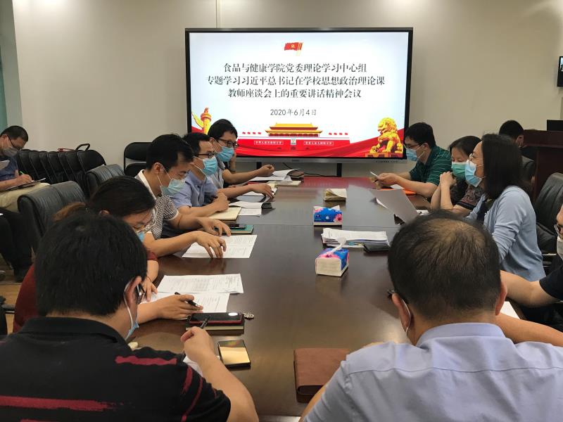 6月4日下午,食品與健康學院黨委理論學習中心組(擴大)召開學習習近平總書記在學校思想政治理論課教師座談會上重要講話精神專題會議。學院黨委理論中心組全體成員、系主任、教師代表、輔導員、辦公室老師等20余人參加。會議由學院黨委書記胡燕霞主持。