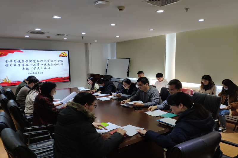 12月16日下午,食品與健康學院黨委理論學習中心組召開專題(擴大)會議,深入學習研討中共北京市委十二屆十五次全會精神,學院黨委理論學習中心組成員、肖俊松系主任以及學生黨支部書記參加學習會,會議由學院黨委書記胡燕霞主持。