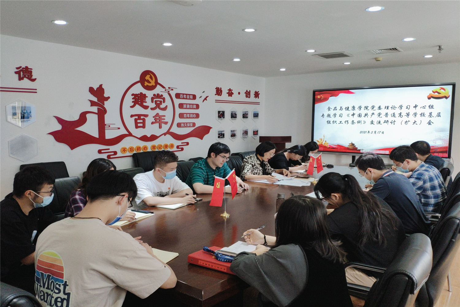 5月17日,食品與健康學院黨委召開了理論學習中心組學習(擴大)會,學習了新修訂的《中國共產黨普通高等學校基層組織工作條例》。黨委理論學習中心組成員及黨支部書記參會,會議由學院黨委書記胡燕霞主持。