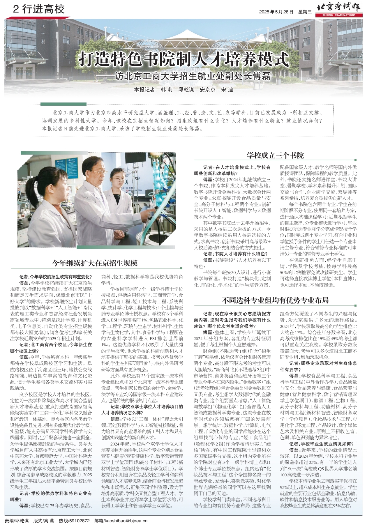 近日,北京考試報記者對我校打造特色書院制人才培養模式進行報道,現將報道轉載如下:
