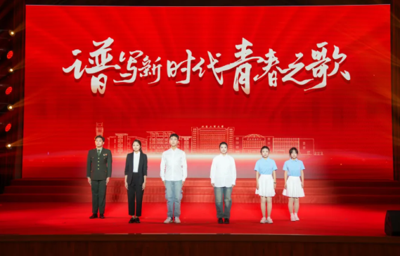 情景劇《青春有我》伴著昂揚的音樂上演。學校十佳學霸宿舍、紅色“1+1”獲獎學生黨支部、先進班集體代表悉數登場,講述了優秀基層組織互幫互助、砥礪前行、愛國奮進的故事。