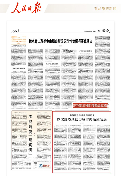 2025年9月5日,《人民日報》理論版刊發了我校語言與傳播學院王新惠教授發表的署名文章《以文脈賡續助力城市內涵式發展——推動城市歷史文化保護利用傳承》。文章立足我國城鎮化發展新階段,緊扣黨中央關于城市高質量發展的決策部署,深刻闡釋城市文脈賡續的重要意義與實踐路徑,為新時代城市歷史文化保護利用傳承提供了有力的理論支撐與行動指引。這是我校新聞傳播學科發表高水平論文的又一重要突破。