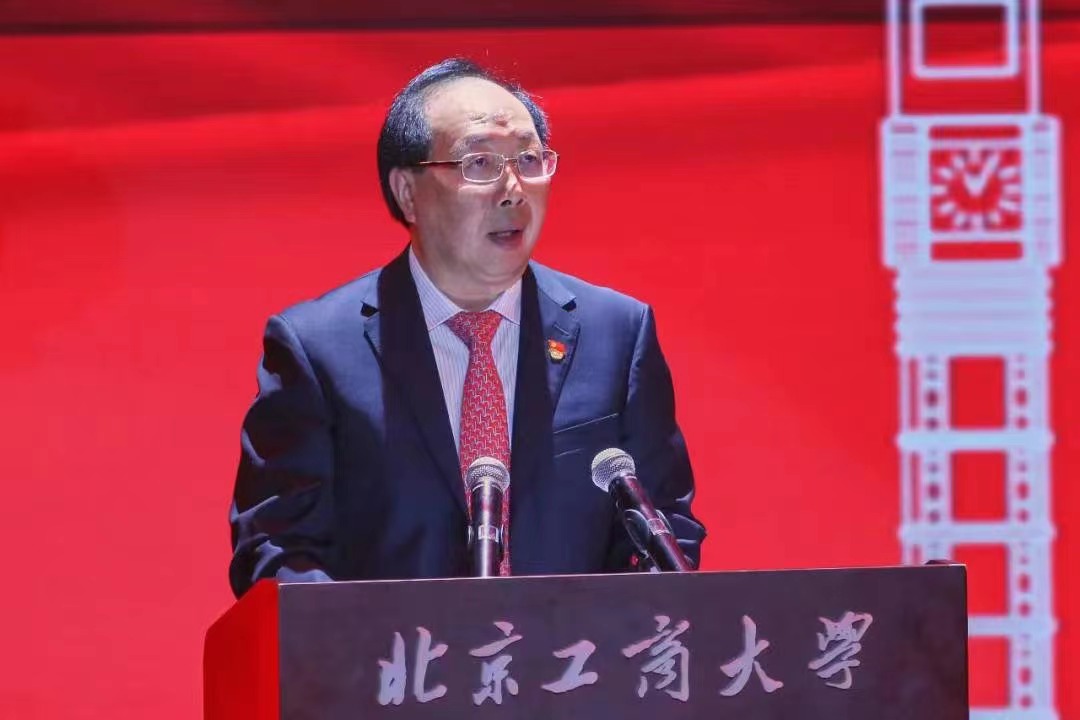 黃先開書記強調,當前,恰逢建黨百年的重要歷史節點,恰逢“兩個一百年”奮斗目標的歷史交匯期,這是一個偉大的時代。中國共產黨的一百年,是矢志踐行初心使命的一百年,是篳路藍縷奠基立業的一百年,是創造輝煌開辟未來的一百年。北京工商大學70多年來發展歷程,也是一代代北工商人用堅定執著的理想與信念、敢闖敢拼的擔當與斗志所譜寫。學校的光榮歷史流淌著紅色基因與理想信念,學校的改革發展彰顯了黨組織作用與黨員擔當,學校的美好未來召喚著開拓創新和接續奮斗。我們這一代北工商人,是與新時代同向同行、共同前進的一代,生逢盛世,肩負重任。伴隨著新時代中國開啟全面建設社會主義現代化國家新征程,高等教育事業、學校高質量發展站在了新的歷史起點。展望未來,我們將堅持以習近平新時代中國特色社會主義思想為指導,牢牢把握正確辦學方向,落實立德樹人根本任務,以更高標準、更嚴要求加強黨的全面領導,推進黨的建設,始終在思想上政治上行動上同以習近平同志為核心的黨中央保持高度一致。胸懷“兩個大局”、心系“國之大者”,不斷提高政治判斷力、政治領悟力、政治執行力。我們要立足新發展階段、貫徹新發展理念、服務和融入新發展格局,立足北京服務首都,落實陳吉寧市長在《北京工商大學綜合改革方案》專題會上的講話精神,瞄準北京市經濟社會發展方向,強化各學科、專業與北京市經濟社會發展的匹配度,明確辦學定位,堅持問題導向,發揮優勢、突出特色,優化資源配置,加快推進重點領域和關鍵環節的改革進程,全力推動新時期學校高質量內涵式發展不斷取得新突破、新進展、新成效。